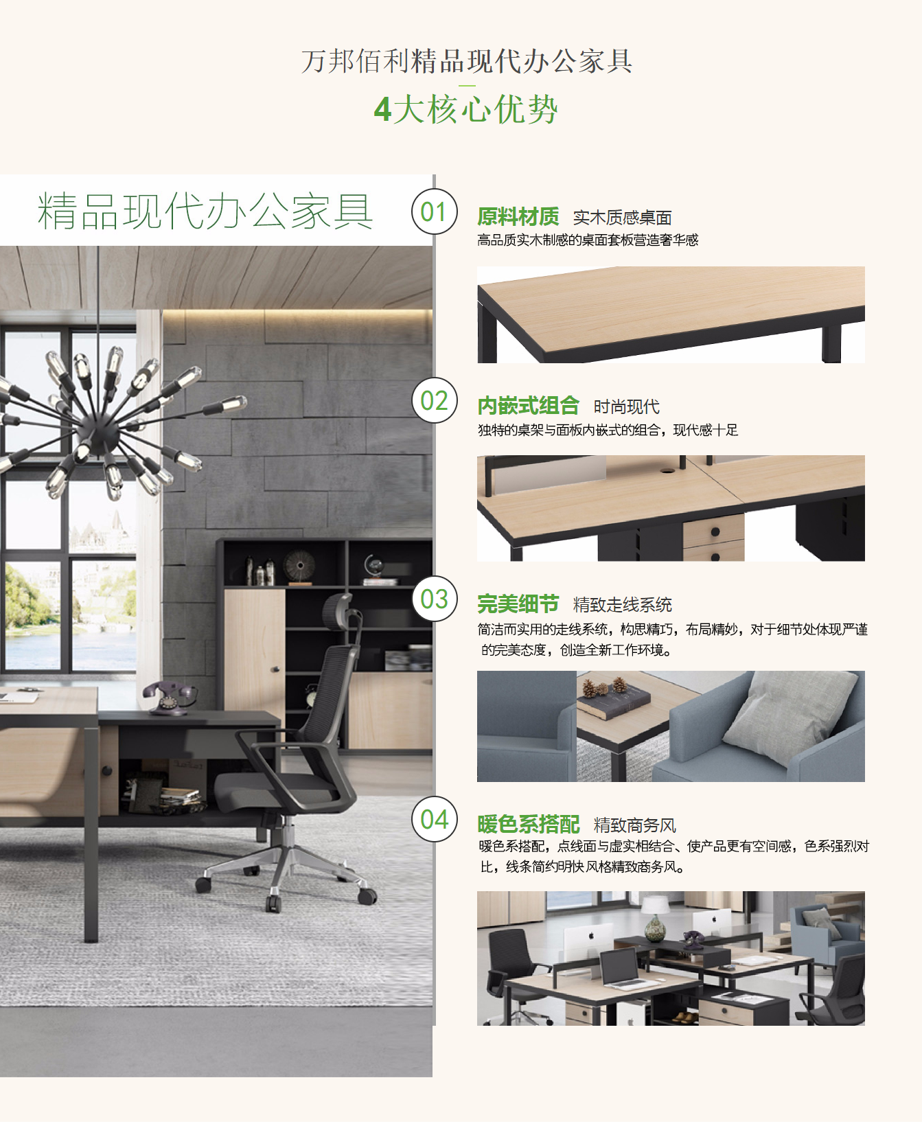 北京萬邦佰利家具有限公司是一家專注于辦公家具生產(chǎn)、批發(fā)銷售的公司。銷售的產(chǎn)品有:班臺、經(jīng)理桌椅、會議桌椅、員工桌椅、文件柜、密集柜、視屏?xí)h桌、辦公沙發(fā)、學(xué)校家具、銀行家具、戶外家具、醫(yī)院家具等產(chǎn)品,公司自成立以來始終堅持以人才為本、誠信立業(yè)的經(jīng)營原則,堅持用企業(yè)文化提升企業(yè)核心競爭力,使企業(yè)在發(fā)展中處于良好的形象.我公司主要服務(wù)于企業(yè)單位的家具定制服務(wù),為各大企業(yè)量身定做整體環(huán)境的家具設(shè)計全程服務(wù),我們的整體產(chǎn)品服務(wù)...